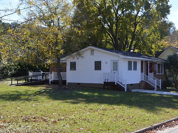 **EXTRA LARGE LOT** Cute ranch in charming downtown Clayton. This 3 bedroom/ 2 bathroom home is situated on a corner lot w/privacy trees separating the home's backyard from the neighbors. This house has not only the lot it is built on, but the yard extends all the way out to the corner, making this city property twice as large! The home has been power washed and all known repairs have been completed; all of the original oak floors are still there and were JUST redone so they shine. The house has been freshly painted and is move in ready! This well maintained home offers a bright living area, an eat in kitchen with tons of cabinet space and a separate formal dinning room that could be used as a family room/ play room etc if desired. There is a full laundry room, 2 good sized secondary bedrooms and a master bedroom with private bath. Enjoy sitting on the back deck that overlooks the large yard. This is convenient one story living AND the home is handicap accessible.