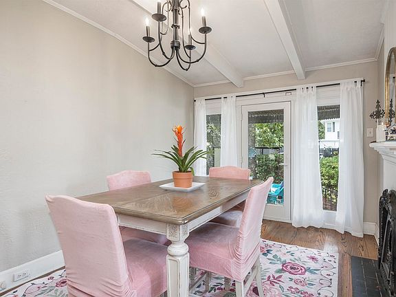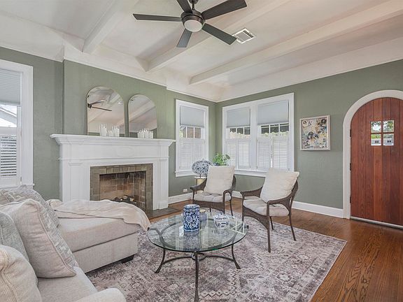 Meet your new happy place! This 3-bedroom, 2-bath home radiates charm from the very first glance. The curb appeal is undeniable, a story book cottage where you’ll feel the character and warmth of a bygone era paired with inviting living spaces. The living room features beamed, high ceilings, a cozy fireplace, and built-in bookcases that add instant charm. The dining room, anchored by a gas log fireplace, looks out over the patio and makes entertaining a breeze. In the kitchen, you’ll find a gas stove, a pantry, and high cabinetry, along with a sweet view from the sink window that fills the space with light. The home also offers a sunroom currently used as an office — the perfect spot for work, hobbies, or simply soaking up the sunshine. Step outside and discover even more — a darling patio ready for gatherings or just peaceful moments, a handy storage building, and established landscaping that will thrill any gardening enthusiast. This is the kind of home that just feels right: full of good energy, charm, and ready for its next owner to make memories in.