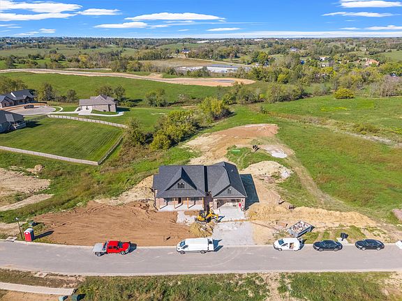 Experience luxury in this new construction 3BR/3.5BA home, set on 2.3 acres in the sought-after Berkeley Hall subdivision. Designed w/meticulous attention to detail, this home features handsome wood & tile flooring, + soaring ceilings throughout. The open-concept plan is perfect for entertaining, w/a spacious great room featuring a gas fireplace w/brick detail, vaulted ceilings w/wood beams, and a large dining area. The chef's kitchen boasts an oversized island with granite, tile backsplash, gas cooktop + walk-in pantry w/wood shelving + wine cooler. The split-BR layout ensures a private primary suite, which includes a luxurious spa-like bath & direct access to the utility room for maximum convenience. The guest wing offers 2BR's + full BA. There's also a 1/2 bath for guests, an oversized two-car garage, and drop zone to store coats & shoes after a busy day. Step outside to the expansive covered deck, overlooking the sprawling, usable lot. The partially finished basement includes, 10' ceilings, a finished BA, fully framed living space, and is roughed in for a wet bar + gas fireplace. Nestled on a cul-de-sac street, this home is perfect for peaceful living. 24-hr kick out.