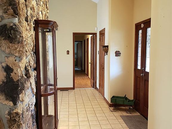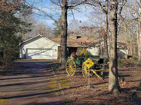 Off road country setting. Large rancher with 3 Bedrooms, 2.5 baths, with master having private bath and walk in closet and two other closets, Living room with large floor to ceiling stone fireplace, Cathedral ceilings, recessed lighting, Three sliding glass doors leading to nice deck overlooking the wide open back yard, formal dining room, Large kitchen with loads of top of the line oak cabinets leads to screened porch with Hot Tub (As Is). Attached is oversized two car finished garage, Heated and Air conditioned. This home was custom built (1989) with all natural solid wood doors and wood trim, Anderson windows and doors. Two storage sheds. Fenced side yard for the dog. Sprinkler system (As Is). With a few personal touches this could be the home your looking for. Call today