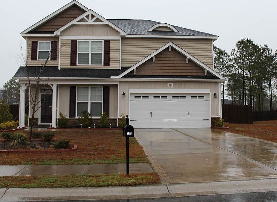 NEW CONSTRUCTION WITH ALL STAINLESS STEEL KITCHEN APPLIANCES AND PRIVACY FENCE INCLUDED! Welcome to a little representation of Onslow County's rich history in the beautiful new Towne Pointe community. One of the largest builders in NC and Towne Pointe have come together to provide an impressive product with charm and quality craftsmanship beyond compare. You will find lighted jogging paths, ponds stocked with fish, and natural areas perfect for picnics or family games. No city taxes, state-maintained roads, and sewer system will save you money and give you peace of mind! 309 First Post Road features the BALLANTYNE, a 4BR 2.5 bath, approx. 2130 heated square feet with 2-car garage featuring an office/study, designer kitchen open to the family room, covered porch, upgraded oil-rubbed bronze fixtures, arched doorways, granite countertops, laminate flooring in foyer, dining rooom and kitchen, and so much more! Home is complete and ready for it's new owners! So much for so little! Builder will include a wooden privacy fence, stainless-steel appliances, and contribute $4278 towards Buyers closing costs. Only $49* to close with preferred lender. SHINY NEW PRICE- $199,900.00