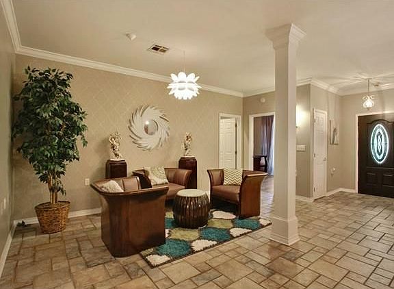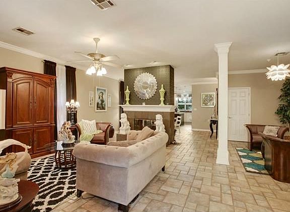 Don't miss this beautifully updated home with an open floor plan, double sided fireplace in den/dining area. Crown molding t/o. Kitchen boasts 42" cabinets, center island w/special ceiling lighting. Granite counter tops and SS appliances. Large master b/r w/fireplace, tray ceilings. Bath features double sinks, separate oversized shower, claw tub. Nice sized backyard w/gorgeous oaks, rear yard access. Front offers add'l side parking & circular drive. Excludes dining room chandelier.