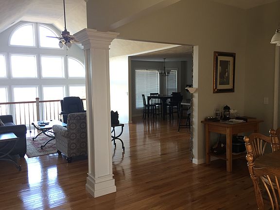 Summersville Lake home in the beautiful community of Foxfield Farms. 8 car garage, lake view, 4 beds, 3 baths, 2 kitchens, gas range, sunroom, workshop, fireplace patio overlooking Summersville Lake. 3176 sq ft heated. 2484 sq ft garage space. 1500 sq ft attic space.