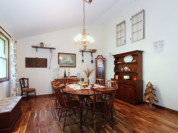 Welcome to this HGTV lovers' dream! 3 bedroom 2 bath home is situated on a beautiful quiet, private lot, just under one acre and completely fenced in. Home features new gas heat and central air in 2014, and roof and Anderson windows both replaced in 2007. Kitchen renovated with upgraded soft-close cabinets, granite, tile floor and stainless steel appliances. Dining room features a vaulted ceiling and new hand-scraped hardwood floors. Living room has custom built-in bookcases and entertainment center. The very large sunroom has tiled floor, skylights, three ceiling fans, gas fireplace and floor to ceiling windows providing a beautiful view of the backyard. Need more room? There's a huge great room with a fireplace (this one is propane). Laundry room has a counter area and storage. Both bathrooms have been remodeled. Outside has everything: sprinklers, pond, raised garden for vegetables, walking paths, fire pit, sheds, a tiled patio area, swing, lighting with sensors screen-house with ceiling fan and lighting and 8 mature trees added this past year. Easy to show with appointment. Just reduced!
