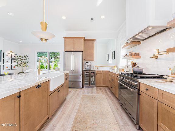 Welcome to 309 Friday Drive, built less than a year ago by Old Fort Building and Development. This unique masterpiece redefines the notion of sophistication through unparalleled craftsmanship and meticulous attention to detail. Located just off the coveted Middle Sound Loop, in a peaceful neighborhood and in close proximity to the scenic Pages Creek. Its innovative U-shaped layout, all on a single level, creates a haven of tranquility. Upon stepping inside, an expansive open floor plan extends a welcoming invitation, flawlessly intertwining the living, dining, and kitchen areas. At the heart of this residence lies an awe-inspiring kitchen, where culinary dreams come true. Boasting a central island that serves as both a functional centerpiece and a masterpiece of design, complemented by high-end Italian appliances, the kitchen serves as a testament to the seamless integration of style and purpose. The harmonious fusion of porcelain countertops with natural wood accents creates an ambiance that exudes sophistication and welcomes with its impressive charm. Step outside to discover a welcoming porch that gracefully extends the home's tranquil atmosphere. Featuring a quaint outdoor dining area and a comfortable sitting space, this outdoor sanctuary invites you to relax and savor life's simpler pleasures. Overlooking a meticulously maintained backyard, fully fenced enclosure, you can enjoy both privacy and tranquility. Newly built and exquisitely designed, this custom haven elevates modern-day luxury to unparalleled levels. Offering a unique opportunity to own a flawless work of architectural craftsmanship, don't let the chance slip by to immerse yourself in the epitome of up-to-date elegance.