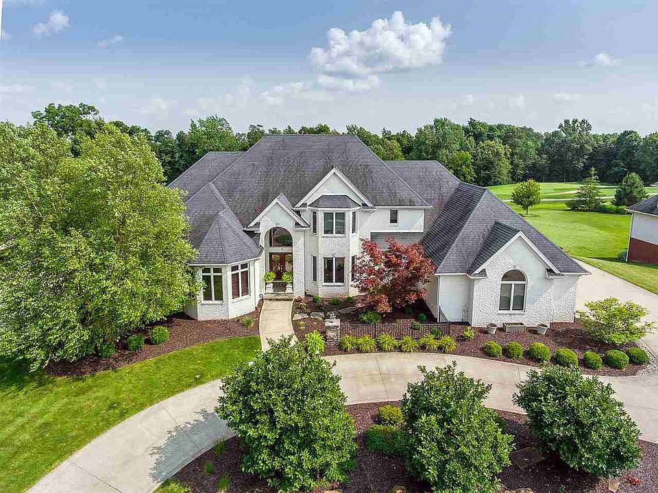Situated on the Chestnut Hills golf course, this beautiful, open-concept home has room for everyone. Nineteen foot windows and hardwood cherry floors in the double-story foyer and great room overlook a huge, private backyard. With 4 full and 2 half baths, each of the six bedrooms has access to an en-suite bath or Jack-and-Jill style vanity. A private office with vaulted ceilings sits on main floor. Cook for everyone in the custom chef's kitchen with granite countertops, Grabill cabinets, and new custom kitchen tile laid over a pinwheel design. Top-of-the-line appliances include a stainless steel Thermadoor oven with 6 top range, stainless steel LG microwave, and GE Monogram refrigerator with custom Grabill Cabinet facade. Downstairs, a full walkout basement has two bedrooms, full wine cellar, fully-equipped gym, and a wet bar. The whole house was renovated in 2013 with new carpet, tile, and new paint in every room. In 2018, the owners added a bedroom, basement den, vanity bath, and carpet flooring in the master bedroom and TV room. The house comes equipped with a security system and attached 3 1/2 car garage with plenty of space for three cars, bikes, and storage. New chandeliers from Restoration Hardware hang in the foyer, great room, and dining room. Surrounded by trees, the house has a private, isolated feel--but reaps all the benefits of the neighborhood association, with access to a double community pool and tennis courts.The peace of a quiet neighborhood in this gorgeous, modern home.