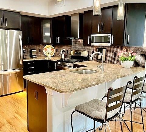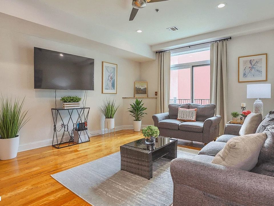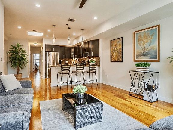 HOBOKEN DOWNTOWN-SEPTEMBER 1 OCC. ABSOLUTELY STUNNING 3BR/2Bath Apartment - Apt#3. Only a 3rd floor walk-up! Welcome to the ""Delaney"" Building. Spacious 3BR/2 full bath condo w/ 250 sq.ft. private patio. Stack Washer/Dryer in apt. Located in prime downtown location just one block from parking garage and steps to NYC Bus transportation. This one-of-a-kind condo featuring gorgeous hardwood floors throughout. Beautiful granite kitchen counters, custom expresso cabinetry and built-in coffee machine, all GE Profile stainless steel kitchen appliances, French door style refrigerator,Dishwasher, microwave. Gorgeous glass range/hood above stove. Breakfast bar, desirable open kitchen/living/dining room layout, tons of windows & skylights flood the entire unit with sunlight from front to back, dual marble bathroom sinks, marble shower, soaking tub and floors, Master bath features radiant heated floors, 19"" LCD HD TV on a full motion wall mount, extremely generous closet space, extra storage in basement, low-profile under cabinet lighting with dimmer switch. Private Patio, central air, gas heat, cable ready! Dimensions: Private balcony 10' x14' Master bedroom room size is 14' x 11' 2nd bedroom size is 13 x 11 3rd bedroom size is 12' x 10' 5"" Living Room size 18' x 13' NO PETS ANY SIZE. NO SMOKING IN BUILDING. NO AIRBNB TYPE RENTAL. Storage area of 10' x 8' in basement available. Convenient municipal Pkg garage nearby! Must speak to garage for availability.