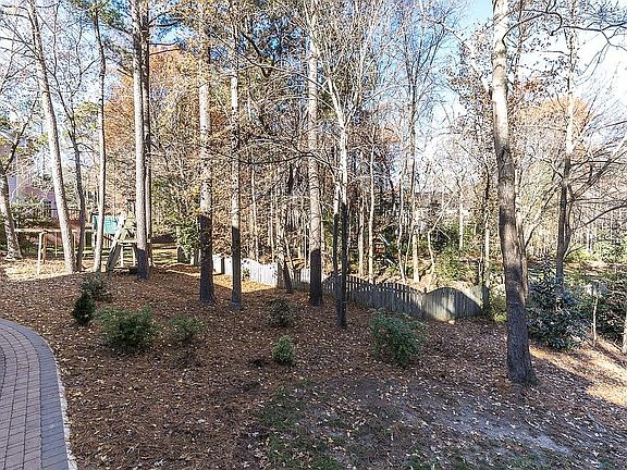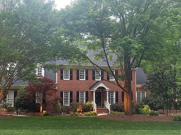 Spacious home w/mature landscaping, backs to cul-de-sac in outstanding N. Raleigh. Walk to Whole Foods, Starbucks & minutes to RTP & airport. Gleaming hardwoods on main w/DR, office/study & bright sunroom. Large FR w/woodburning FP open to spacious eat-in kitchen w/granite & SS appliances. Master BR w/large WIC & separate lady’s dressing room w/built-ins & large ensuite. 3 large secondary bdrms & bonus. Large deck overlooking wooded backyard. 3rd flr walk-up attic for storage/expansion. Tankless H2O htr