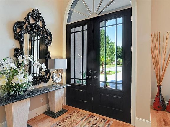 This spectacular custom built in 2015 home shows like a brand new model. Hardcoat stucco, 3 BR, 3 BA plus Den-Office all on one floor. Situated on a wooded, professionally landscaped private lot. Gourmet kitchen boasts custom wood cabinets, stainless steel Décor appliances w/ 6 gas burner cook tops and granite c'tops. Modern interior with hickory wood floors throughout, fireplace and 12 ft high ceiling provides a majestic appeal. Master bedroom with sitting area and luxurious spa bathroom. Large, ensuite secondary bedrooms. Extended 2 Car Garage with Golf Cart Space. Immaculate condition! A must see home!