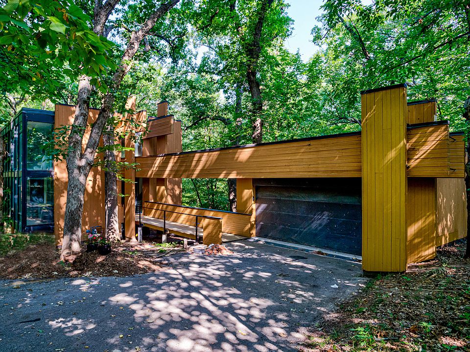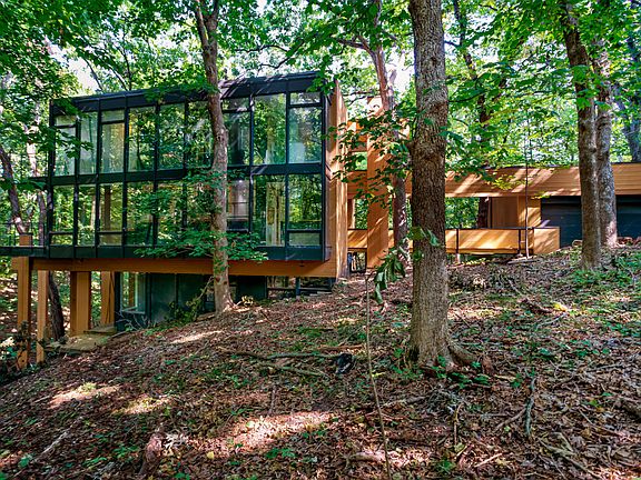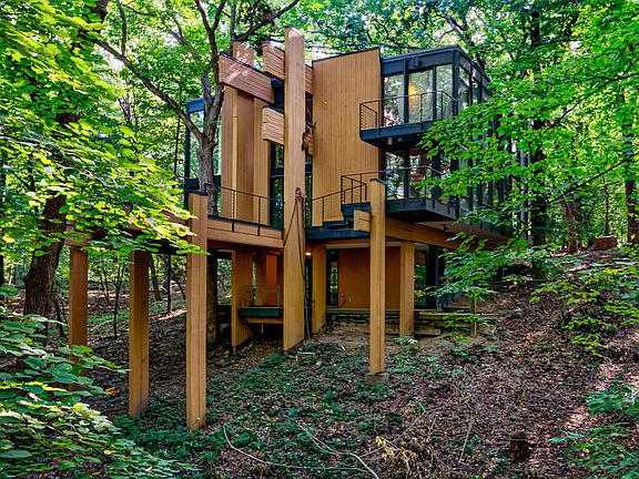 Unique contemporary house nestled among Munn Woods. Extraordinary view of the trees and nature that surrounds this house. Step into the great room that has expansive windows to offer beautiful views to the outdoors from inside. Deer are frequent visitors in the woods. The floor to ceiling brick fireplace is a great architectural feature. Enjoy nature and the great views from the decks that the house offers. Convenient kitchen, dining area, 1/2 bath and green house space on the main level as well. The open upper level has a master bedroom, full bathroom, laundry and an extra space for an office or den. The lower walkout level has 2 bedrooms, full bathroom, family room and has a deck area to enjoy the beautiful setting. The architect of this stunning house was David Block and it was built by Pike. Located west of Iowa State University in the Munn Woods area, this house is a must see. The property is being sold as is.