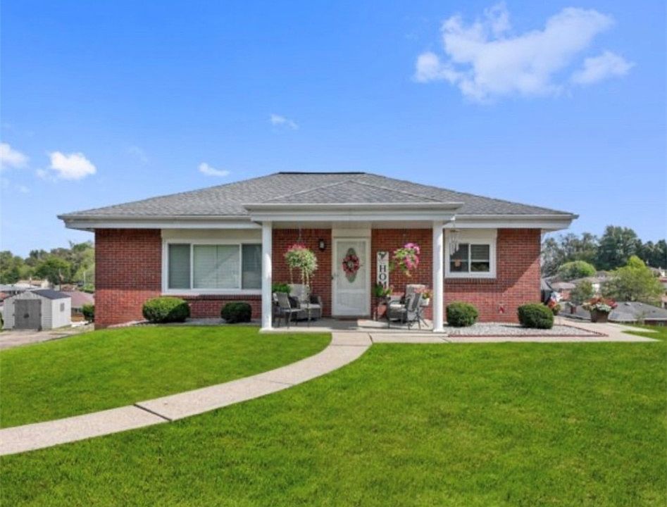 Welcome to this delightful two-bedroom, one-bath brick ranch! This inviting residence boasts a walkable, level front yard that enhances its curb appeal. Step inside to discover a beautifully updated white kitchen, butcher blook countertops, stainless steel appliances, complemented by new flooring throughout the home, creating a fresh and modern atmosphere.Recent upgrades include a newer roof, windows, and doors, ensuring peace of mind for years to come. The wide-open floor plan seamlessly connects the living spaces, making it perfect for both entertaining and everyday living.Venture down to the basement, which offers an ideal retreat for a man cave or additional recreational space. Outside, enjoy the partially fenced backyard, providing a private oasis for relaxation and outdoor activities. Don't forget to unwind on the lovely front porch, a perfect spot for morning coffee or evening chats. This charming home combines comfort, style, and convenience, making it a must-see!