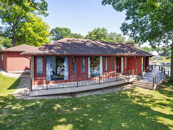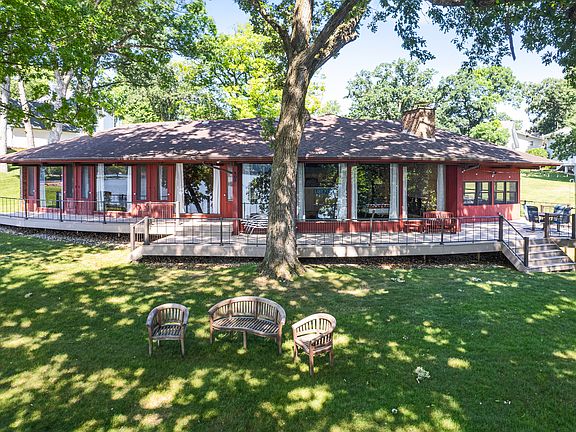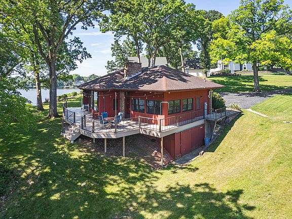 Notably the most ICONIC home on Lake Holiday - 309 Holiday Drive is a mid-century masterpiece! It's situated on one of the largest waterfront lots at .78 acres, with 162ft of water frontage, all on the desirable lake location of Moonlight Bay! Showcasing one of a kind curved construction, this home was originally built by Mr. Greene of "Barber Greene" in the 1960's, and has only had 2 owners since its construction in 1967, both having kept the character of the home intact. Nestled in a quiet cul-de-sac on the Somonauk side of the sought after Lake Holiday community, 309 Holiday Drive boasts not 1, not 2, but THREE lake view bedrooms each with their own 2 private doors to the lakeside of the home, making you feel as if you are staying in a luxury hotel suite. A stunning, freshly remodeled full bathroom featuring a tiled walk-in shower & floor, floating vanity, new toilet, and a towel warming rack is nearby, as well as two very generous storage closets lining the hallway. A stylish powder room, 2,246sf above grade, as well as, a new, and expanded, composite deck following the lake side curve of the home are the key highlight features that will have you swooning! Upon entry, your eyes will immediately be drawn to the lake view you see, but also the mid-century charm oozing from every corner of this home! Tongue and groove ceilings with exposed beams and brick walls highlight the open concept family room and kitchen combination with connection to the updated sun room with new LVT floors, fresh paint, and a cook top stove for BBQ's. The floor to ceilings windows throughout let the natural light fill each space and create a nostalgic atmosphere. The kitchen is home to new SS appliances, and an expansive 2 tiered island, plus a new skylight! Laundry has also been added to the utility room for convenience with a slop sink. A useable basement space is accessed via a sliding barn door on the exterior of the home that has been outfitted with a humidistat and turned into the perfect place for all your wet lake toys! Next, begin to explore the sprawling FLAT LAKEFRONT LOT with only a few steps leading down to the lakefront deck spanning approx half of the 162ft of water frontage, along with a concrete seawall, and swimming pier. A detached garage also bodes well for boat and lake toy storage, along with a wide driveway for your guests to conveniently park. This is the opportunity of a lifetime to own this incredible home, and a piece of Lake Holiday history while you can "Be On Vacation Every Day of the Year!"