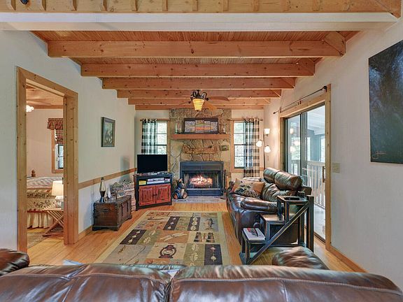 The Mountains Are Calling And I Must Go, is what you will feel when you pull into the drive of this amazing waterfront 3 BR,2 bath,plus sleeping loft cabin right on babbling,trout filled,Coopers Creek!The rustic main level includes granite counters,living area with exposed wood beams and wood burning fireplace,bedroom,large screen/sun porch overlooking noisy,creek,upstairs is a sleeping loft and the terrace level includes Master Suite with gas logs fireplace,granite counters,lge closet,huge screen porch which opens to large party deck overlooking mountain serenity,addit.grilling and dining deck.Did I mention the 2 car garage!Convenient location to Blue Ridge,Blairsville,and Suches!One of a kind waterfront property!