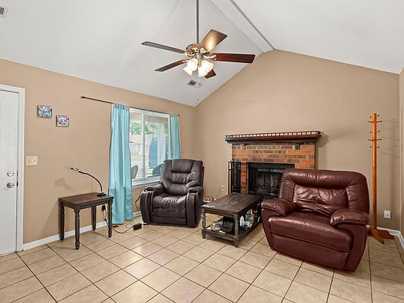 This charming brick ranch home is nestled on a large lot in a quiet and established neighborhood. This is a great location that's close to everything! It's also zoned for the desirable Stratford High School. As you enter, you're greeted by a vaulted ceiling and a bright open floor plan with a great flow for entertaining and everyday living. Enjoy cool evenings in front of the cozy fireplace in the family room. The kitchen offers ample cabinet and counter space and an adjacent dining area overlooking the backyard. Refrigerator to convey, with an acceptable offer and as part of the sales contract. The spacious master bedroom features laminate wood flooring and a private en suite bathroom with ceramic tile flooring and a large shower.The patio and large privacy-fenced backyard will be perfect for grilling out, entertaining, or watching the kids and/or pets play. Conveniently located near shopping, dining, and the interstate. Come see your new home, today!
