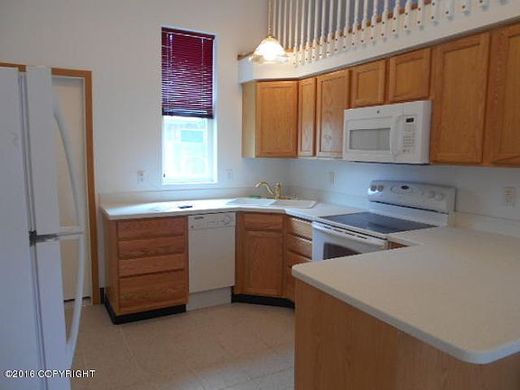 Nice 2 story townhouse type cottage. 1 bd 1 ba, washer/dryer included. Nice wood accents. 1 car attached, heated garage, 1 carport and another carport/storage. Nice lawn. Quiet neighborhood.