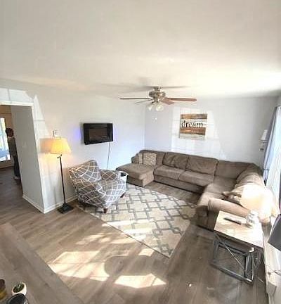 Nice townhouse, totally renovated on the inside! New laminate flooring through out 1st floor, new kitchen cabinets including the plumbing in the walls! Large pantry, laundry in a closet off kitchen, 3 nice bedrooms and the bathroom was remodeled as well! Bedroom 1 has 2 closets, one a walk in. The 2nd bedroom has a built in loft bed and a walk in closet. Large covered deck with with a fenced yard and swing set that stays. 5 window units included. Nice driveway for off street parking. Newer roof and water heater. Community pool , playground and hiking trails. This nice home is much better than renting!