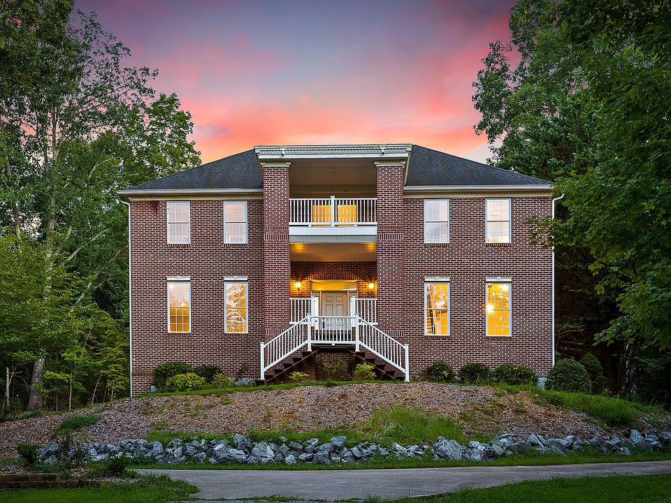 Welcome to your new wooded retreat! This stately 3 bedroom 4 bath home sits on nearly 8 acres of lush wooded land on a quiet road at the end of a long winding drive. Conveniently located equidistant from downtown Cleveland and historic Collegedale, you can easily enjoy the amenities of both charming towns. This home features a front porch and an upper front balcony with beautiful views, as well as a back patio for entertaining. Inside, you'll find spacious rooms with lots of natural light streaming in. The living space is located downstairs and includes an open kitchen with custom cabinetry, a large laundry room/pantry, half bath/powder room, formal dining room, and large living room. Upstairs you'll find all three bedrooms, each with its own full bath. You need to see this one in person. Schedule your showing today!