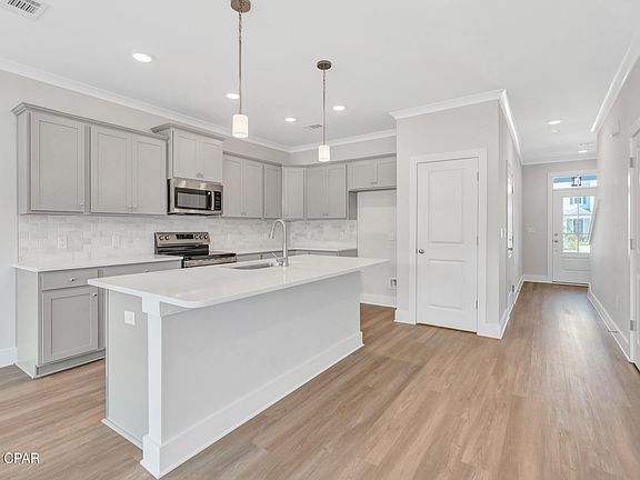 NO RENTAL RESTRICTIONS!!! Our stunning pool is NOW OPEN! The prefect place to SOAK UP THAT Florida SUN! Seagate at Clara is a new townhome community nestled in the vibrant city of Panama City Beach, FL. This two-story unit features board and batten exterior and covered entries. One car garage provides a great space for storing beach essentials. This Unit has a LARGE FENCED IN PRIVATE YARD. This open concept townhome boasts a stylish kitchen with white cabinets, tile backsplash, a large island with quartz counter tops - perfect for entertaining. The elegant Owners Suite is designed with comfort in mind showcasing a large walk in closet and double- bowl vanities. Main Bath has tiled shower. All bathrooms have quartz countertops. LVP is located throughout the home. The community pool features a cabana, lounging, seating and grilling stations. This community has a dedicated dog park. Seagate at Clara is in a prime location, approximately 1.4 miles to the sandy beaches and just minutes from Pier Park.