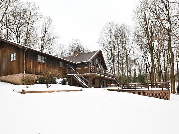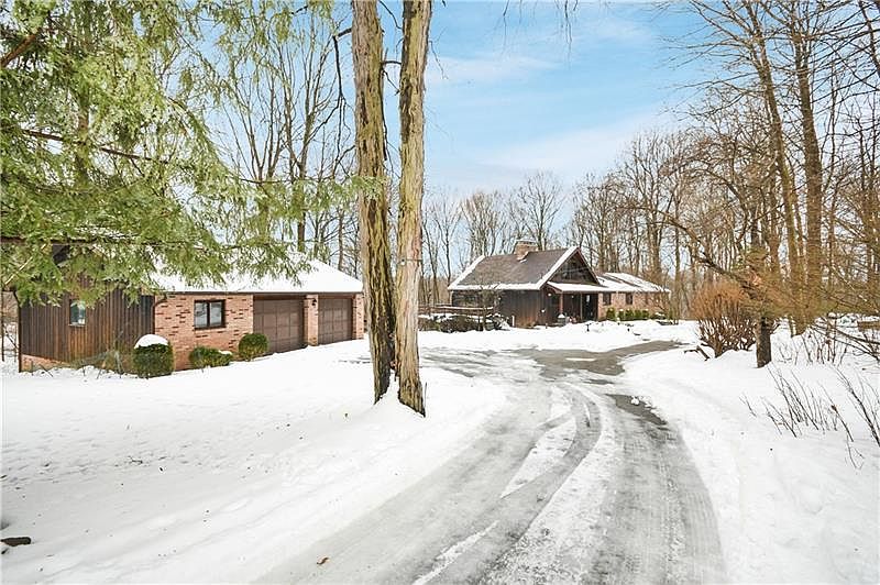 **DID YOU SAY "WE DONT WANT TO LIVE IN A PLAN"** BUT want to be close to everything! THIS IS IT! Gorgeous wooded setting with over 3.5 acres~ LEVEL drive thru the trees to your Chalet type home! Feels like you are on vacation...Everyday! Large Detached oversized garage w/room for office or work area (plumbed for a bathroom)~ This home has LEVEL entry and you can live all on the first floor if need be~ 2 STORY Living/dining room w/whole wall of windows for a STUNNING view! Gorgeous hardwoods & Stone Fireplace. Kitchen is super functional w/Hickory cabinetry, NEW stainless appliances, granite counters. Large pantry~ 1st Fl.laundry. Large 26x16 Loft overlooking Living room, makes a great office or flex space. Master bedroom w/sliders to deck, walk in closet & master bathroom. Finished Lower Level w/ newer carpeting & bar area w/ sliders to the HUGE 30x20 DECK! Close to Rt 19, Meadows, Shopping & Easy Access to Rt 70, I79~ Canon McMillan School District~ 1 yr home warranty incl*