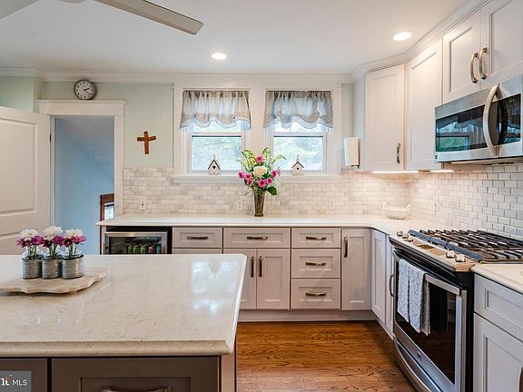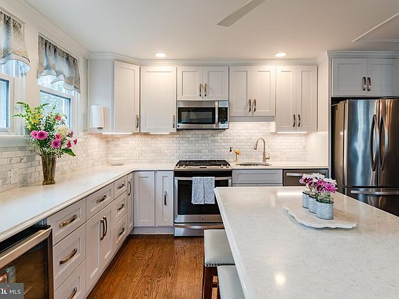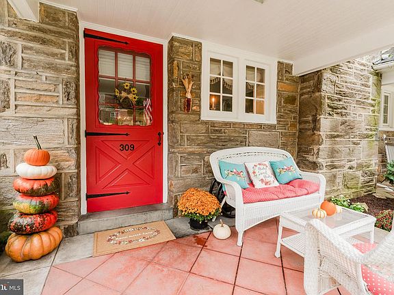 Welcome to 309 Lismore Ave, a charming 4 bedroom stone twin in the heart of Glenside with incredible outdoor spaces to enjoy. An inviting covered front porch leads to an open concept first floor space with all hardwood floors. Living room has beautiful wood burning brick fireplace, inlaid hardwood floors (chair lift on steps will be removed) and enters into dining room that opens to gorgeous updated kitchen. Kitchen has wonderful wood cabinets, tile backsplash, quartz countertops, all stainless steel appliances including wine cooler, recessed lighting and large beautiful island. Kitchen leads to powder room and rear patio, deck and fenced in rear yard. Second floor has three freshly painted bedrooms, some built-ins and two closets in main bedroom. Hall bath has tub and separate shower area. Third floor leads to 4th bedroom with painted knotty pine walls and built-in closets and cabinets. Lower level/basement has a great room for entertaining, storage area as well as utility room housing washer, dryer and work bench area. The rear yard has a patio leading to large deck, fenced rear yard, beautiful plantings and large shed. Other amenities: Off street parking as well as plenty of on street parking, newer windows, walkable to Glenside train station and downtown Glenside. This is an awesome house on a perfect street! Enjoy! All offers are due by Sunday, Oct 24th, by 5 pm!