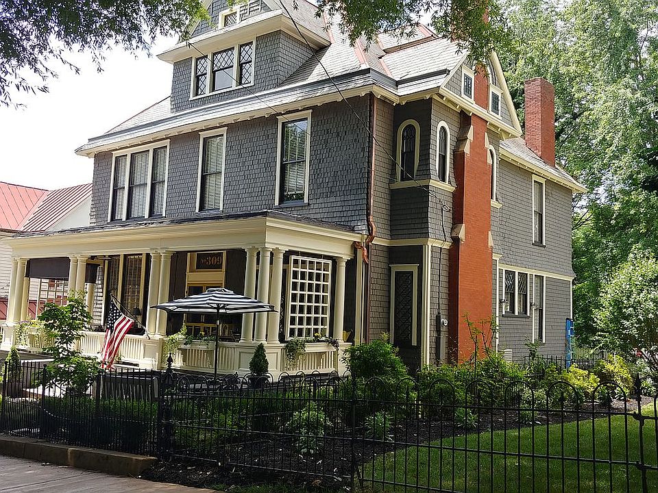 The history, the details, the elegance. The Private driveway to a beautiful totally fenced courtyard with 2 screened in porches, a dining deck, lovely low maintenance gardens, lawn, and off-street parking for 3+ cars. The spacious "living" front porch is surrounded by a formal front garden perfect for entertaining. The grand reception hall with it's one of a kind staircase, fireplace nook and arch framed diamond windows is amazing. It is so big it could be used as a formal living room or fabulous dining room with extra-long table. The front to back hallway accesses the living room, spacious dining room and the brand-new kitchen with walk in pantry and is connected to the laundry and full bath. The second floor with 3 enormous bedrooms each with an original fireplace and sitting area, the master bedroom sports a boutique walk-in closet and private double vanity bathroom. An open staircase leads to the third floor which is finished with two bedrooms, a family room with a wet bar, and full bath. The original diamond paned windows have a beautiful view. Each of the two bedrooms have interesting "crow’s nest" study nooks for the adventurous youth. One bedroom even has an enormous walk in closet. There are 2 rooms that can be used as home offices and still have five bedrooms. The second-floor hallway leads to a glassed in “sleeping porch” with views of the rear garden. Huge baseboard moldings, original doors and six fireplace, window seats, wainscoting, and more details complete this historic gem in Garland Hill Historic District.
