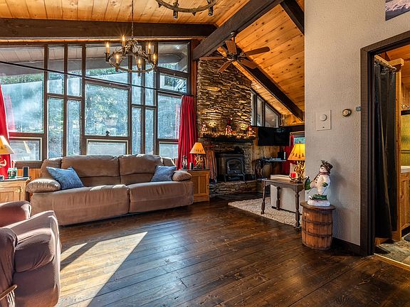 "A little corner of Switzerland '' is what the founder of Magic Mountain, Hans Thorner created in the lifestyle, community, and overall experience of Magic Mountain, and this is your opportunity to be a part of that. This 3 bedroom, 2 bathroom ski chalet sits on the high side of Magic Circle making it a quick walk to access a ski trail and then an easy ski back to the chalet. The home itself offers beautiful charm and the comfort of a ski home with wood floors and big windows to watch the winter snowfall, a fireplace to cozy up around on chilly nights, a back deck with winter views, a hot tub and sauna to relax in, a fenced-in area for your pet, and a long list of improvements. Some of the improvements include a installation of a heating antifreeze system, a complete lower level renovation, a mudroom renovation including a new exterior door, the bathrooms have new vanities, sinks, and faucets, new kitchen counter, sink, and faucet, kitchen floors refinished, new rear stairs have been added to the back deck, and the exterior, deck, and stairs have been recently stained! This home is being sold furnished. The furnishings are only 4 years old and lightly used. The community at Magic is very special with the Black Line Tavern, and fire works on the 4th of July. With a quick google search you can get a peek of the Magic experience as well as it's history.