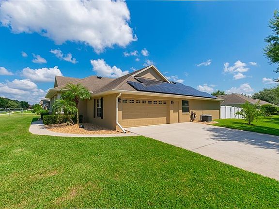 If a well maintained, energy efficient, upgraded, POOL home is what you are looking for, STOP the search.. because this is it! This 4 bedroom 3 bathroom triple split floor plan home has it all. Ultimate curb appeal: newly painted exterior, fresh landscaping with new low flow sprinkler system and custom soffit pot lights set this home apart. Whole home solar panels and hybrid hot water heater mean low cost monthly energy bills for you and only 2 years old. Interior paint and carpet only 2 years old and very well maintained. Kitchen boasts open concept to living room, stainless steel appliances, granite countertops and large 42'' cabinets. The layout of this home is ideal for families and allows for plenty of privacy. Master Bedroom and ensuite has grand tray ceiling, soaker tub, walk in shower and huge walk in closet. Large sliding door off the living room provides a great indoor/outdoor feel. Opening up to the spacious pavered patio and screened in pool area. Pool not only looks great but has new salt water system and variable speed pool pump. Too many upgrades and additions to mention. Must see. The gated Estates of Auburndale won't disappoint either: beautifully tree lined streets, large community pool, kiddie pool, playground and turtle preserve are just some of highlighted community features. Conveniently located between Orlando and Tampa. Close to I4. Call or text to schedule a private showing today.