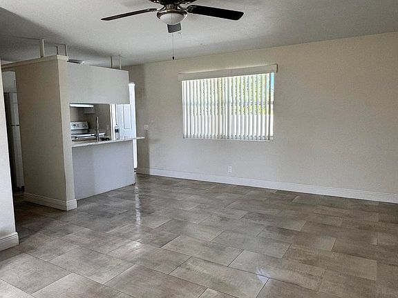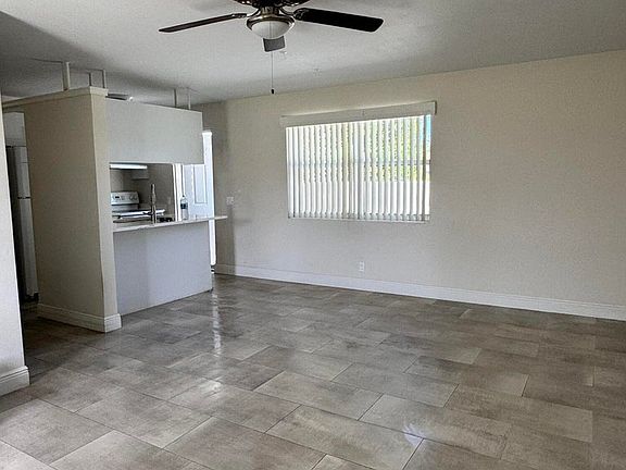 Freshly painted interiorWell-appointed updated kitchenCeiling fansHurricane shuttersTile floorWindow shadesStainless steel appliances