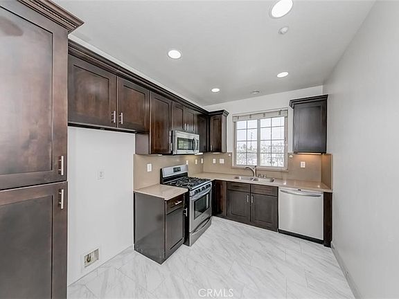 Hard to find - Live/Work Condominium located in the SOCO Walk District of Downtown Fullerton. Kitchen with stainless steel sink, stove and dishwasher, newer Expresso kitchen cabinets and quartz counter top and back splash, and new tile floor. Second floor has a Living room with fireplace and balcony, kitchen/dining area and also one bedroom and bathroom. The third floor has the Master's Bedroom and bath and another bedroom. Laminated floor(water resistance) and cork padding on 2nd the 3rd floor. Bottom floor is office space with separate access (just installed smart lock), separated water heater, ideal for a CPA, Real Estate, Insurance Office or Coffee Shop. This office bath was a 1/2 Bathroom was built by the builder and owner added shower with no permit. Downstairs office can also used as 4th bedroom. Laminated wood floor, bathroom tile floor, new interior paint. Newly repaired balcony, new lighting in garage, new patio door handle, triple pane windows. Great location close to everything. Across from the community, there is the Metro Link/Amtrak station and close proximity to shops, schools and churches. COME HOME TO MODERN DOWNTOWN LIVING!