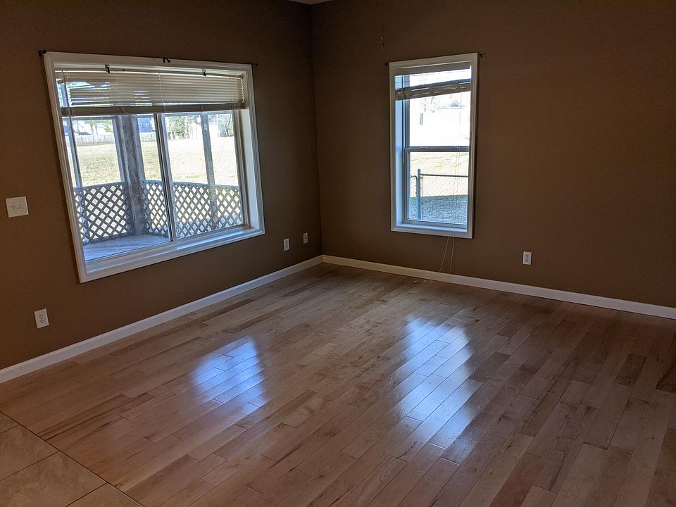 two bedroom one bath home with enclosed front porch, on a farm, semi-private lot, fenced in backyard. Available Feb. 1st water and trash included. Also has washer and dryer furnished. Rent responsible for electric and gas