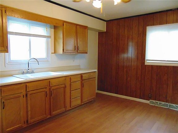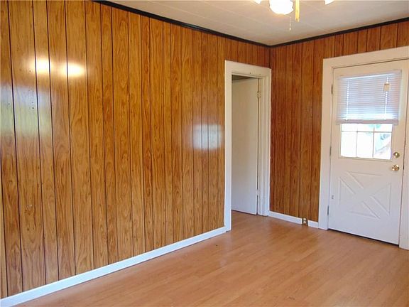 This move-in ready home is waiting for its new owners. The large eat-in kitchen has nice maple cabinetry and counter space. Plenty of room for a large table to gather around at mealtime. Living room is accented with a half-brick wall. Upstairs are two nice sized bedrooms and a full bath with a walk-in shower. Laminate flooring in all rooms is easy to maintain. Lower level has great space for laundry facilities and an additional room perfect for a workshop or storage area. Full bath on lower level is complete with a tub. Enjoy some relaxing moments on the covered front porch. Back yard provides great space for outdoor fun, room for pets and a garden. Convenient location, close to town and a short drive to Route 70.
