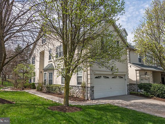 Bursting with character and exuding timeless charm, this immaculate end-unit carriage-house in a gated Lansdale community is a must-see! Brick pavers, manicured landscaping, and towering trees line the path leading to its private side entry. As you step into the grand foyer, be impressed by a stunning interior combining soaring ceilings and neutral tones elevated by refined millwork. Updated wood flooring gives way to soft carpet in the living room that accompanies you with a stately two-sided fireplace and an arched built-in bookshelf. Seamlessly flow into the adjacent family room that basks in ample natural light through numerous windows and glass sliders. Gatherings are made intimate in the chandelier-lit dining area and the breakfast nook overlooking the lush outdoor surroundings. Delight the avid cook in the gorgeous kitchen with a suite of premium stainless steel appliances, stylish cabinetry, and a butcher block island with seating under pendant lights. Vaulted ceilings expand the comfortable proportions of the bedrooms that treat you to ample storage for your wardrobe. Multiple walk-in closets, a sitting area with treetop views, and a luxurious ensuite with a soaking tub transform your primary suite into the ultimate relaxation spot after a tiring day. On the third level, another bedroom with skylights, carpet, and its own full bath can serve as guest accommodations or a home office. Ideally designed for entertaining, the fully finished basement features a bar with a beverage fridge and floating shelves. In addition, it comes with a flex room you can convert into a workout space. Bonus perks include an attached 2-car garage. Ready to live the enviable lifestyle most only dream of? Come for a tour before somebody else does!