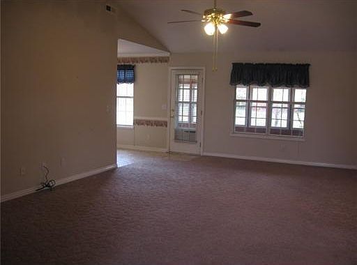 Darling 3 bedroom, 2 bath home with open split floor plan. Cathedral ceiling living room, sunny welcoming foyer, trey ceiling in master with walk-in shower, whirlpool tub, double sinks and awesome 9'3"x5'7" walk-in closet. Bedroom 2 has built-in desk. Cute kitchen open to sunny breakfast area. Pantry, breakfast counter. Plantation blinds throughout. Sunroom overlooks large privacy fenced backyard. Outbuilding plus extra storage in garage. Backs up to George Jr High School.