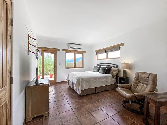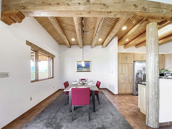 This incredibly well-maintained house is waiting to share its incredible views of the Sangre de Cristo mountains with you. The tasteful open floor plan makes it ideal for entertaining both inside and out. The architectural details throughout make you feel right at home in the Southwest. Tongue and groove ceilings with beautiful vigas, kiva fireplace, and the large picture windows that bring the outdoors in and provide beautiful views both day and night. The master suite also provides beautiful views as well as space for a sitting area. The second bedroom is almost as large and will accommodate large furnishings. This home is heated by efficient in-floor radiant heat to keep you warm and comfortable throughout the winter. Saltillo tile throughout the home, granite countertops in the kitchen and all new stainless steel appliances. Each bedroom has an air conditioner as does the living room to keep you cool during the warmer summer days. A large 2-car garage with additional storage space is directly accessible from the home. The portal faces north and has a wall for added privacy. Landscape in the front is taken care of by the Condo Association. The homes here are all independent of each other, however are considered Condos.