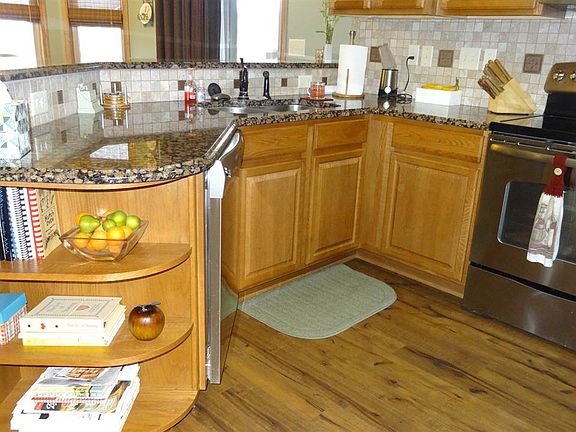 Home sweet home! This well maintained house is ready to be your new home. The features in this home include 2 main floor and 2 basement bedrooms, gas fireplaces in the main floor living room and the basement family room and a family room wet bar. This custom built home features granite counter tops, tiled bathroom and laundry room floors, vaulted ceilings and designer light fixtures. All appliances remain with the house including the washer and dryer. The kitchen and dining room have wood floors with room for a dining room table and seating at the granite counter top. The covered deck leads to a fabulous, park-like backyard where you'll enjoy the covered deck and a large patio made of stained, stamped concrete. The backyard storage shed holds all your lawn tools. The raised beds are perfect for flower and vegetable gardens and have a drip irrigation system. Come discover quiet, small town living in Hesston and all this great home has to offer.