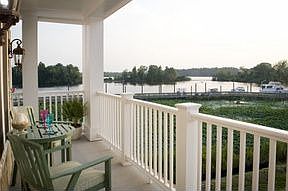 come live and enjoy one of the last remaining small, charming coastal towns. Whether you want to stroll the city waterfront, dine in one of the area restaurants or escape to a night at the Turnage Theater, living at this Moss Landing villa is the place to be. Offering over 2000 sq ft in this custom designed 3 BR/2.5 BA waterfront villa upgraded with granite countertops, tile & gourmet kitchen with oversized pantry, double ovens, and Bosch appliances. The master bedroom overlooks the waterfront and includes a large tile tub and shower with intricate design and raised dual vanities. There are 4 custom plantation shutters, custom tile, custom closets with oak hardwood floors throughout the kitchen and living room. There are two other bedrooms on the opposite end of the home with another custom tile bathroom. Imagine sipping lemonade from the wraparound porch offering sunrise and sunset views of the Pamlico River or watching the annual flotillas and firework displays along the Moss Landing Marina. Interior features also include central vacuum system, alarm system, garage, storage building, pocket doors in kitchen and a laundry room and custom tile floors. You wont be disappointed with the style, elegance, and southern charm that can only be found in this treasure.