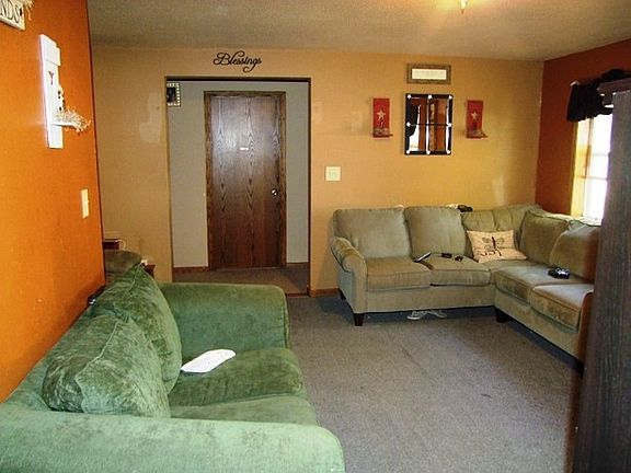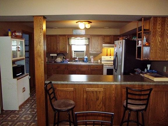 Great starter home! Enjoy the small town atmosphere in this two bedroom with the possibility of three bedroom, spacious home. Has nice oak cabinets in kitchen, main floor laundry and an over sized two car garage with workshop.