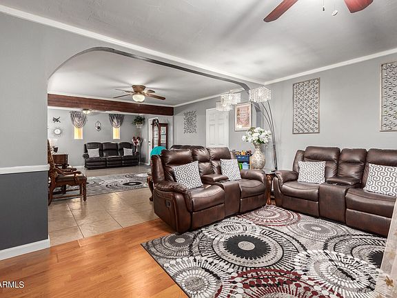 Check out this charming home with a gated courtyard and a cozy front patio! Get an up-close inside to find wood-look & tile flooring, chic light fixtures, and a lively living room perfect for entertaining. Desirable great room has an exposed ceiling beam. Spotless kitchen is equipped with plenty of grey cabinets, stainless steel appliances, granite counters, mosaic backsplash, and a peninsula that adds to the counter space. Impeccable primary bedroom offers sliding doors closet and a private bathroom with granite countertops. Spacious backyard includes a covered patio, storage shed, rear vehicle entry, and a workshop where you can use your creativity! Don't miss the chance to own this beauty!
