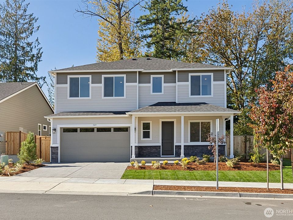 Welcome to Highpoint East - a charming new community in Mt. Vernon. Ideally located between Seattle & Vancouver, BC & close to schools, shopping, health care & outdoor recreation. This beautiful Twain plan with Mt. Baker views offers smartly designed living spaces & high end features throughout. The main floor features an inviting great room w/cozy FP & gourmet kitchen w/island, walk-in pantry & adjacent dining area plus a study, 1/2 BA & covered patio. Upstairs, you'll find a primary suite w/lavish BA, 3 additional BRs & utility rm. Extras include landscaping, irrigation, fencing, 9 foot ceilings, central A/C, EV charger & more! If working w/a licensed broker, please register your broker on your 1st visit per our site reg policy.