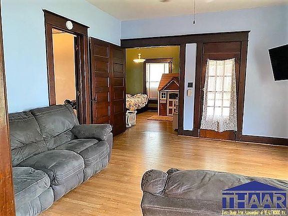 Sweet & charming 2 BR, 1 BA home close to shopping and schools. Roof installed in 2013. Beautiful original doors and woodwork. Built-in hutch in the spacious Dining Room. Off-street parking with garage bays for 3 vehicles. Wrap around covered front porch. Abundance of storage space in the Basement and enclosed back porch. Call a Realtor for a personal showing.
