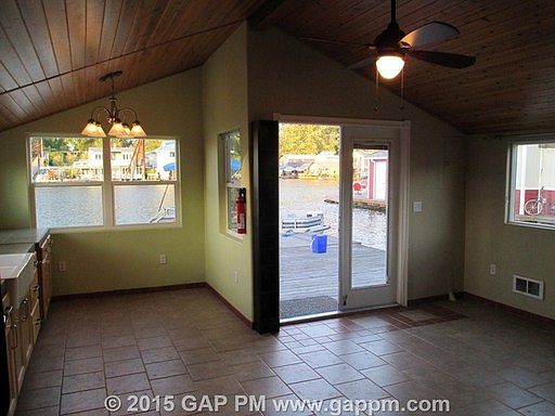 Front Row Floating Home Living Experience life on the river in Portland! This 2 bedroom, 1.5 bath single level floating home is located on the front row with fabulous water views. Great room style layout with kitchen, dining area and living space all looking out onto the large front deck and the river. Master bedroom has full bathroom with shower and lots of closet space. Smaller bedroom would be great for an office or 2nd bedroom. Stack/washer dryer, lots of storage throughout. Great room and bathroom have tile floors, bedrooms have bamboo flooring. Ceiling fans. Room to moor a boat. Floating home is located in the Lotus Bridge Marina. Off street parking. Location is convenient to shops on Hayden Island/Jantzen Beach and is a quick drive into downtown Portland or over the bridge into SW Washington. Monthly rent is $1,600 (water, sewer & garbage included). Deposit amount starts at $1,500 and is dependent on screening results. 6 month lease. This is a no smoking property. No pets permitted.