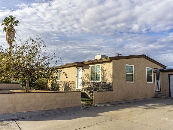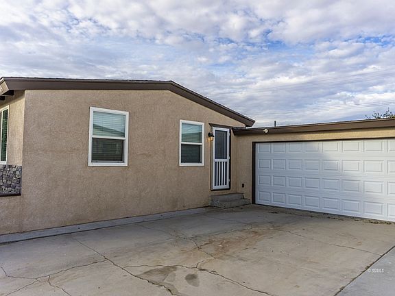 The front yard features a stucco block wall with planter boxes, stylish rock face at the front of the home/stoop and trees/bushes with a sprinkler system. The interior has been updated with wood vinyl plank flooring, window blinds and a fresh coat of paint. The kitchen has been renovated with granite countertops, newer cabinetry, stainless steel appliances and a tile backsplash. Both bedrooms have updated ceiling fans. The bathroom has been renovated with a newer tub, tile shower surround, plumbing fixtures, mirror, lighting and vanity. Exterior has been updated with a newer roof, fresh stucco, painted eves, windows, exterior doors, evaporative cooler, water heater and garage door with opener! Garage has laundry hookups. Large back yard! Block wall fencing at the south and west side plus a large double gate to the rear alleyway.