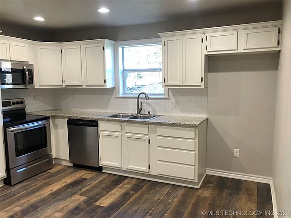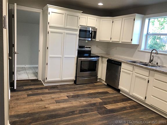 Bungalow in the middle of Sand Springs-2 bedroom, 1 bath, partial basement, large covered front porch with central heat and air! Home has lots of updates and floor plan is awesome! Home sits up high and parking is in the back. Perfect starter home and easy access to downtown Tulsa and major Highways. Nice backyard to have a small garden and/or swing set. Come check it out!