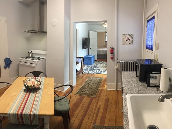 Private entry for this FULLY FURNISHED ground floor suite in Historic Downtown Flagstaff. This is one of several fine residences in an updated historic home - circa 1906 Lindemann House. There is a comfy king size bed, a fully stocked kitchen with dishwasher, range/oven, full size fridge and microwave, a full bath with tub and shower, WIFI, a smart 50" TV with Roku, a full size sofa bed, a window AIR CONDITIONER, full size washer and dryer and an outside patio with table and chairs. Off street parking is just a few steps away. All utilities and WIFI are included. Available on a month to month basis or longer. $2,000 refundable security deposit and $200 non-refundable cleaning fee. Sorry, no dogs or cats. Contact Bruce - owner/agent - with Linton Real Estate for further information. All utilities and WIFI included