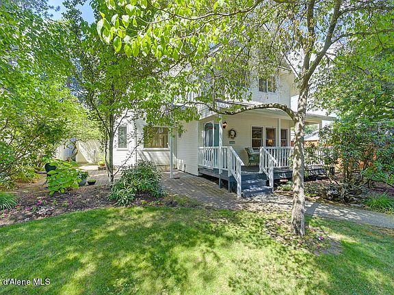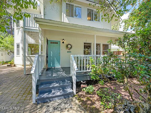 Picture Perfect Vintage Fort Grounds Home has all the charm, without the vintage quirks as it was rebuilt from the original foundation in 1984 and remodeled in 2004. Just one short block to the action - Coeur d'Alene Lake, pristine beach, Centennial Trail and City Park - yet located on arguably one of the quietest streets in all of downtown. Set back and nestled among mature trees for maximum tranquility , you'll find complete privacy on the cozy yet airy front porch. Soak up the sun or find shade on the large private patio, surrounded by custom landscaping. Excellent floor plan fosters both privacy and entertaining opportunities with a great mix of designated spaces and open flow. Charm throughout includes solid hardwood floors, free standing fireplaces, vintage-look lighting, skylights, french doors, and built-ins. Gated and secure parking accessed through the alley, air-conditioning, forced air furnace, and sprinklers make this an easy place to live. SELLER FINANCING Potential.