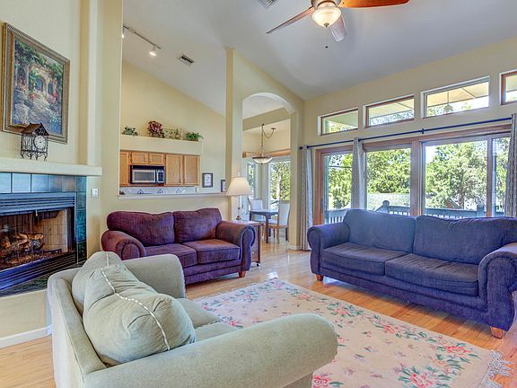 High ceilings give this spacious 3BR/2BA home a mediterranean flair. Lots of windows bring the outside in. Formal dining area, breakfast nook, split floor plan, gas fireplace, lots of architectural features and wood flooring in living room, dining room & kitchen. There is also a bonus room with separate heating/cooling and a wall of oak cabinets perfect for hobby room etc. Covered porch, new outside paint, fenced back yard that's a gardeners delight, shed, roses and more. Large corner lot with lots of curb appeal. One of the most attractive homes in town!