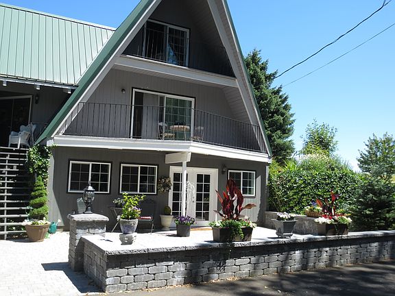 Stunning hidden gem! This gorgeous A frame is nestled in the trees on just over an acre of private flat land. Wonderful grounds, with multiple entertaining spaces. Beautifully updated kitchen, with stainless steel appliances, and upgraded cabinetry. Convenient location, minutes from the freeway and shopping, move-in-ready!!