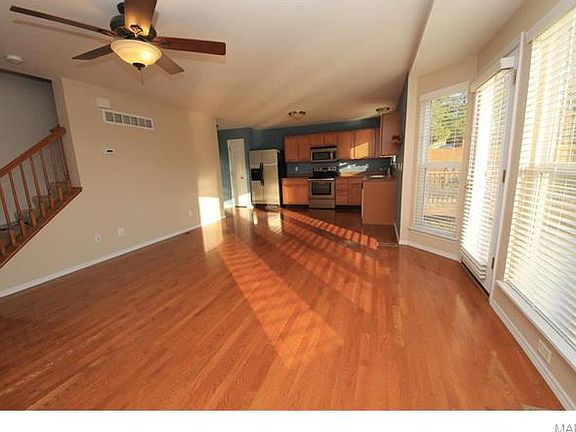 Situated minutes from Page Extension (364), Highway 94, Interstate 70 & sits on a PRIVATE CUL-DA-SAC..309 Northshore not only offers a CAREFREE LIFESTYLE free from mowing/fertilizing the lawn, snow removal, & landscaping but also features 3 BEDROOMS, 2 BATHS, 2ND FLOOR LAUNDRY, & A FULL BASEMENT which is unlike many of the homes in the Waterside Crossing community that typically are only 2 bedrooms/1.5 baths & no basement! OPEN FLOOR PLAN with GORGEOUS HARDWOOD FLOORING THAT FLOWS THROUGHOUT THE ENTIRE MAIN LEVEL! Great room offers extra living space thanks to the BAY WINDOW and opens to the kitchen that offers MAPLE CABINETS, STAINLESS STEEL APPLIANCES, including the REFRIDGERATOR, & a PANTRY. 15x14 owners suite boasts 2 WALK IN CLOSETS & a PRIVATE BATHROOM. Secondary bedrooms are 15x10 & 14x10...BOTH WITH WALK IN CLOSETS! Not to mention...END UNIT, 12x12 PATIO, 2 CAR GARAGE, WHITE 6 PANEL DOORS & neutral décor throughout! Call today for a private tour!