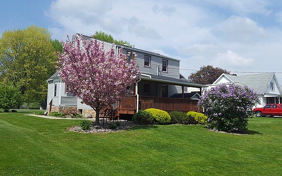This beautiful cape cod is move in ready! Beautiful Brick & Stone accents welcome you on to the covered front porch. Enter the home to find the living room where you can cozy up beside the wood fireplace on those cool autumn evenings. You will appreciate the custom Glick Built Kitchen featuring oak cabinets with soft close doors and drawers, pull outs in every cabinet, high definition laminate counter top with square edge and Kenmore Appliances. Step into the first floor bath where you will find a cozy tub/shower, laminate tile flooring, and a white pedestal sink. Owner has completely remodeled the bathroom. Exit the rear of the property to find a 12x24 back porch featuring recessed lights and a ceiling fan to keep cool on those hot summer days. The second floor bedrooms have extra storage space on each side. Some additional features include a 14x24 outbuilding, three sources of heat, 200 amp service box, 2016 hot water heater, and hardwood floor under first floor carpet.