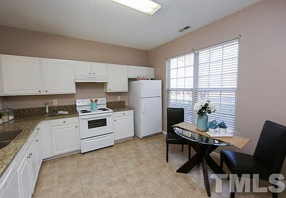 Hard to find END UNIT town home in GREAT Cary location! * 9 ft. ceilings downstairs* Kitchen with granite counters and tile floors* Bright and Open great room w/ gas log FP* 2 Bedroom suites upstairs with vaulted ceilings and private baths* Patio* Outside storage room* Backs to trees with great view*